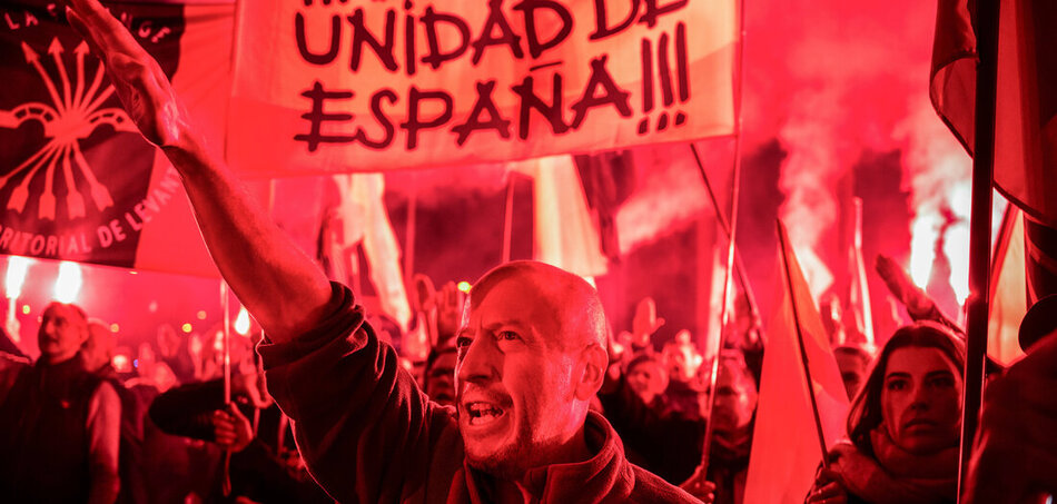 A szervezett jobboldal legutóbb a novemberi, több hetes madridi tüntetésekkel jelentkezett. A résztvevők spektruma a klasszikus neonáciktól a kispolgári vállalkozókig terjedt. Jelezték, hogy a jobboldal bármikor bármire kész. A kormányt törvénytelenséggel vádolták, és megszüntetését követelték. Mindezt puccsra való felhívások kísérték. A tüntetéseken sokan énekelték a Falange fasiszta párt himnuszát, a "Caraal Sol"-t ("Szemben a Nappal"), rózsafüzérrel imádkoztak és Hitler-köszöntést mutattak be. Azt ismételgették, hogy "Katalónia Spanyolországhoz tartozik", de valójában azt akarták mondani, hogy nem akarják elfogadni azt a néhány reformot, amelyet a koalíciós kormány más szinteken végrehajtott.