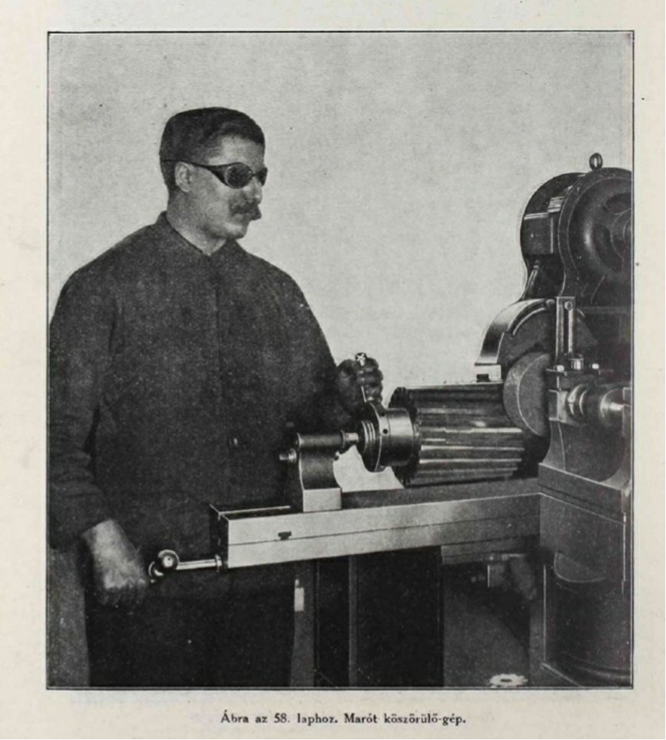 Balesetvédelem: Marót-köszörülő gép. 1912. A Társadalmi Múzeum SzemlÉje (Őze Eszter: A dolgozó testek múzeuma)