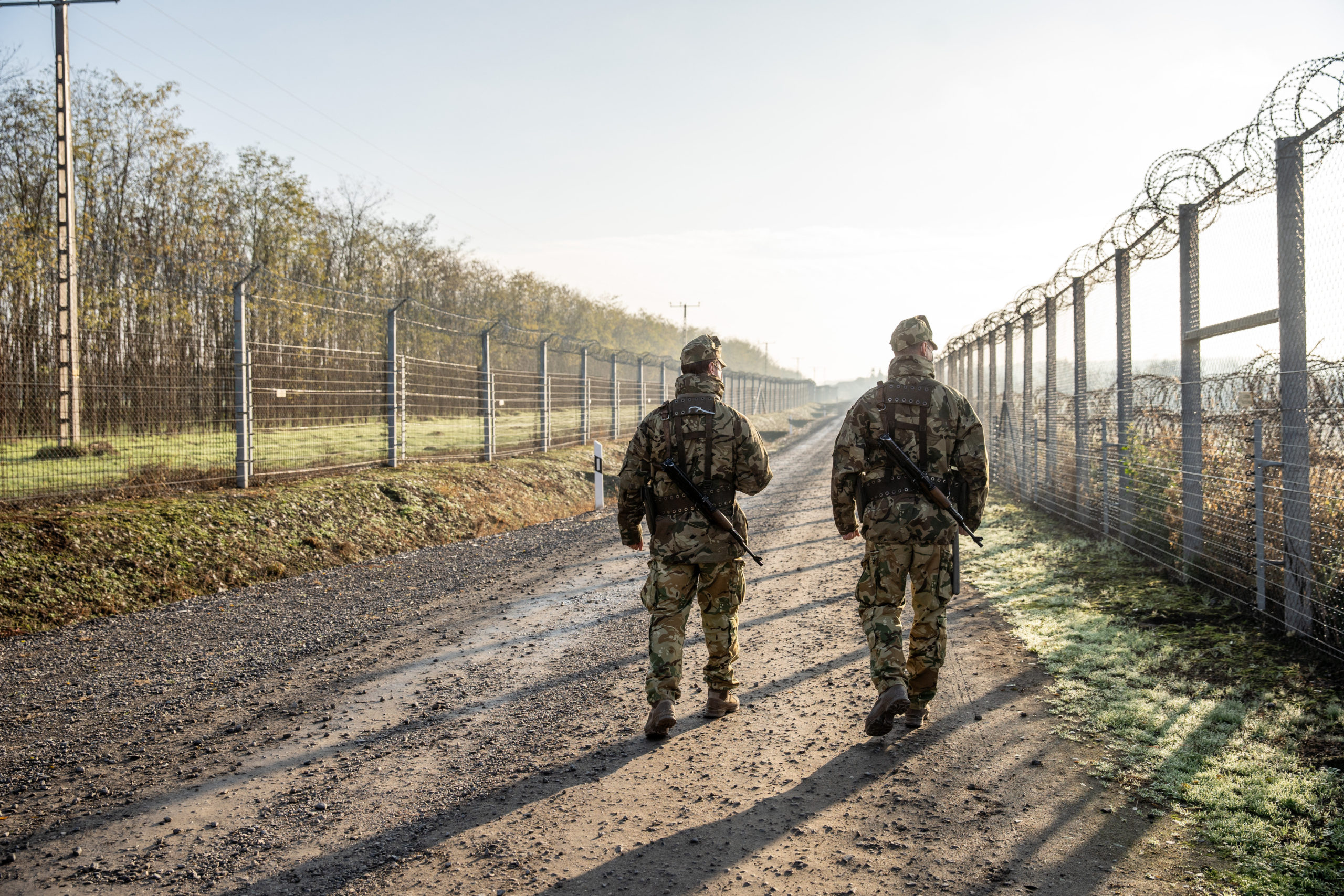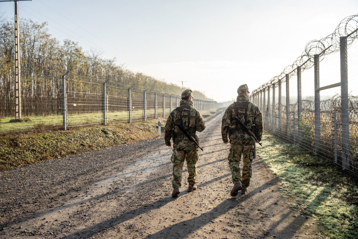 Katonák járõröznek Hercegszántón, a határzárnál 2020. november 18-án. Németh Szilárd, a Honvédelmi Minisztérium (HM) parlamenti államtitkára ezen a napon sajtótájékoztatót tart a fokozott katonai szerepvállalásról, a katonai jelenlét megnövelésérõl a határzárnál. Kijelentette, hogy a magyar kerítés betonbiztosan õrzi Európa és Magyarország békéjét, a szinte hermetikusan lezárt déli határszakaszon egyetlen egy illegális bevándorló sem juthat át. MTI/Rosta Tibor