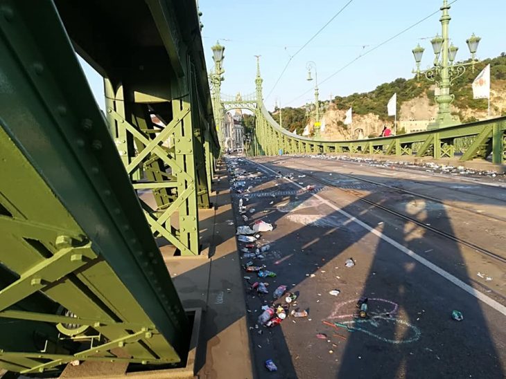 De nevetséges azért is a cikk, mert a szemetelés egy nagyvárosban mindig probléma, egy ilyen rendezvényen pedig hatványozottan az. A tömegrendezvényen szemetelők elleni hápogás pedig az egyik legszánalmasabb dolog, amit a médiában el lehet követni. Nyilván, amikor nincs elég szemetes, akkor a menedékkérők is hagynak maguk után szemetet, meg a focidrukkerek is, ahogy a 2016-os magyar EB-menetelés idején is szeméthegyek maradtak. Ez nem kultúráltsági, hanem szervezeti kérdés. Egyébként vasárnap délután legalább 20-30 kuka volt kint a Szabadság hídon. Ennél többet nehéz kirakni, de egy több ezres tömeg szemetelési igényét se ez, sem a környező utcák kukái nem tudják felszívni.
