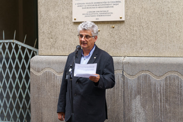TOTYIK TAMÁS (PSZ) BESZÉDET MOND A SOMOGYI BÉLA ÉS BACSÓ BÉLA TISZTELETÉRE ÁLLÍTOTT EMLÉKTÁBLA ELŐTT